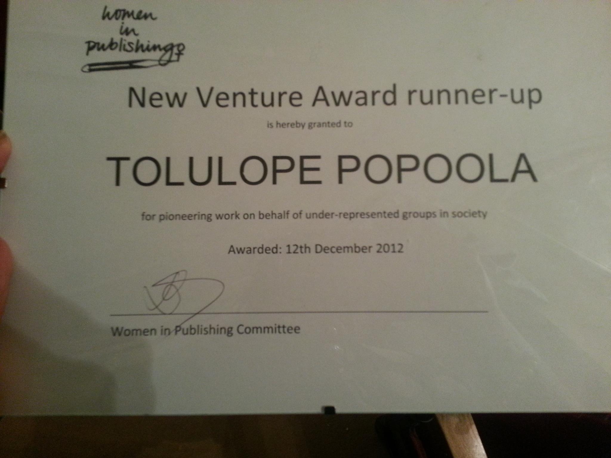 WiP New Venture Awards Runner Up: Tolulope Popoola, founder of Accomplish Press (yay!)